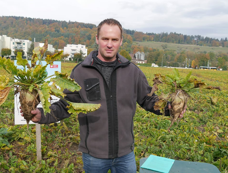 Mais il existe un moyen efficace de traiter les semences. Il présente l’avantage de ne pas devoir pulvériser de grandes surfaces par la suite. Mais comme il est interdit depuis environ deux ans, nos champs de betteraves sont jaunes. Nyffenegger prévoit un rendement de seulement 120 tonnes cette année au lieu de 160 tonnes. La betterave sucrière infestée a une teneur en sucre plus faible que la betterave saine. Si les pesticides synthétiques sont interdits, on peut s’attendre à des pertes similaires pour d’autres cultures. Quiconque veut des céréales, des fruits ou du colza suisses à des prix abordables doit pouvoir vivre avec l’utilisation ciblée de produits phytosanitaires. Sinon, il faudra probablement en importer davantage de l’étranger.