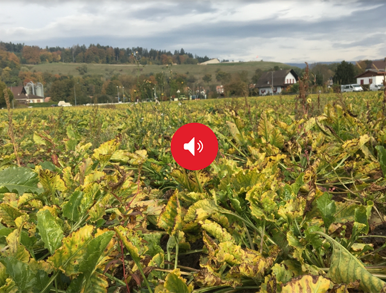 La SRF a rendu visite au producteur de betteraves sucrières Lars Nyffenegger à Worben, près de Berne. Ses champs de betteraves à sucre sont jaunes. «Info3» explique.