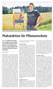 "Beinwil Landwirt Peter Hausheer engagiert sich mit Plakaten auf seinen Feldern und an Ställen, um die Bevölkerung über die «Notwendigkeit eines massvollen Pflanzenschutzes» aufzuklären ..."